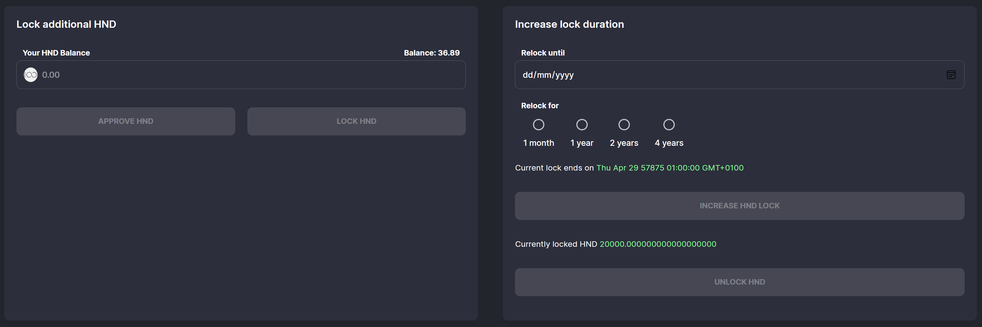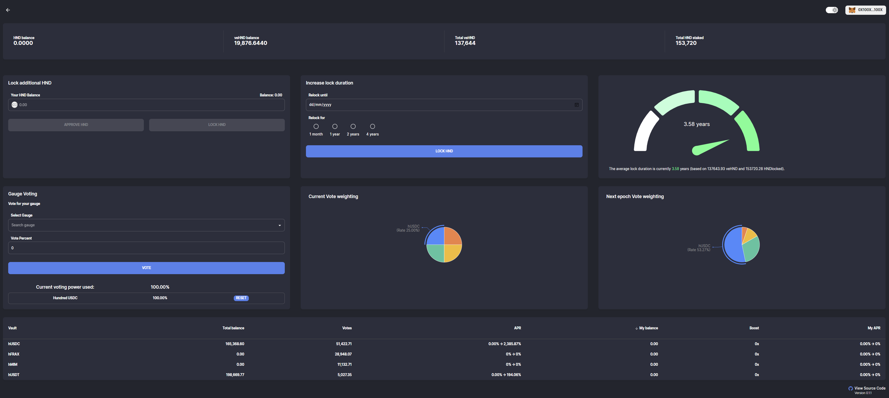 The gauges that are available (and thus which assets can be used to receive HND emissions) is currently limited to those implemented by the team, though subsequently, once enacted, governance will play the core role is gauge creation and HND allocation. In addition, as each chain will initially have its own gauge system deployed, voting on one chain will not impact how HND are distributed on another. This, combined with the cooldown, encourages the development of an environment of tactical voting and liquidity assignment that rewards attentiveness to the protocol.